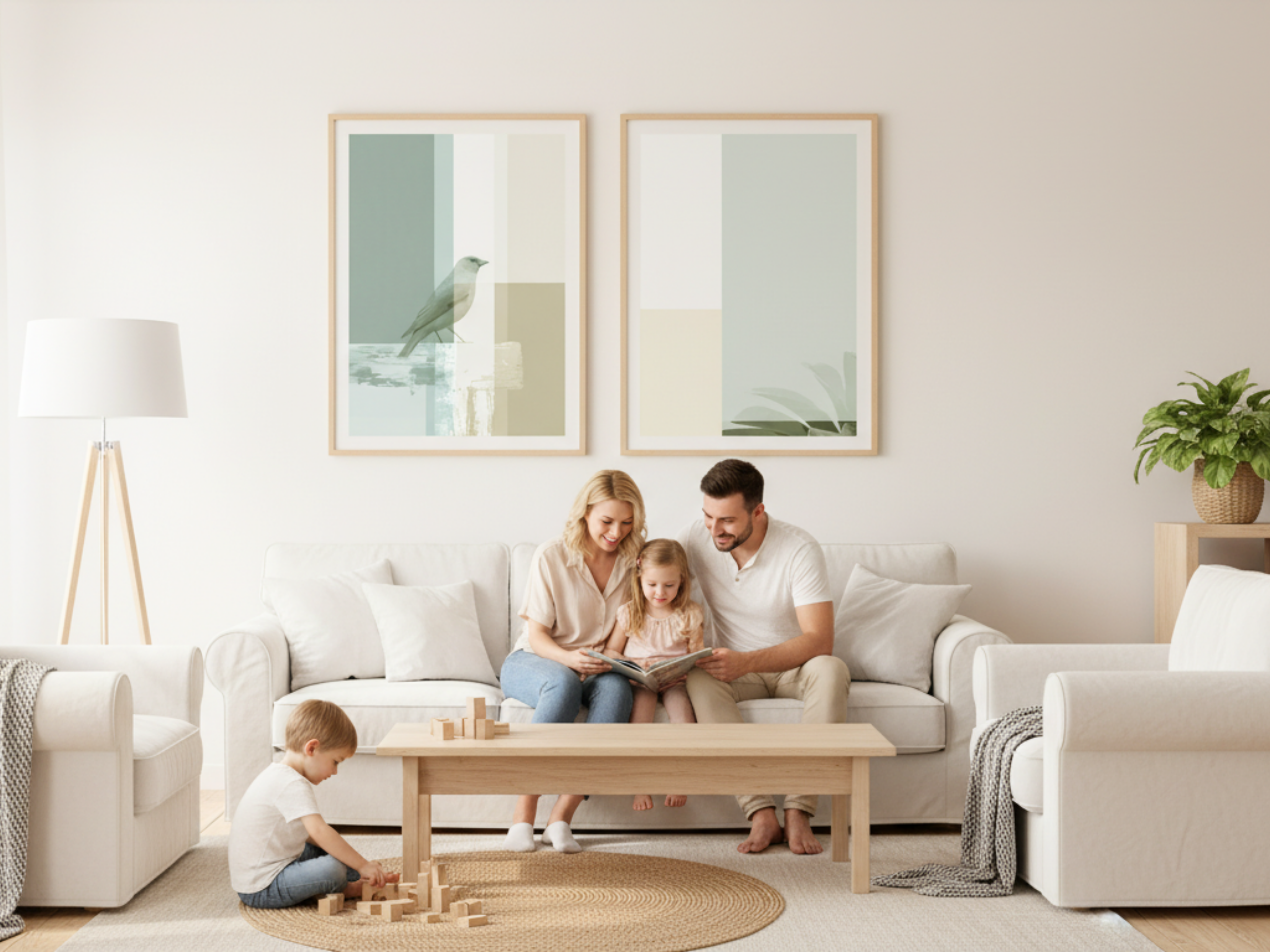 Mamíferos Marinos Abrazados en Estilo Minimalista – Cuadro Infantil con Foca y Cría