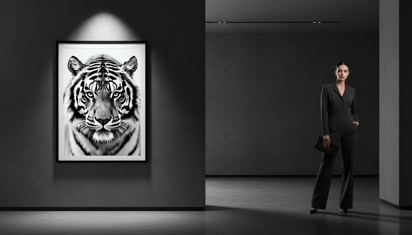 Tigre Blanco Intenso – Cuadro Animal Blanco y Negro Estilo Minimalista