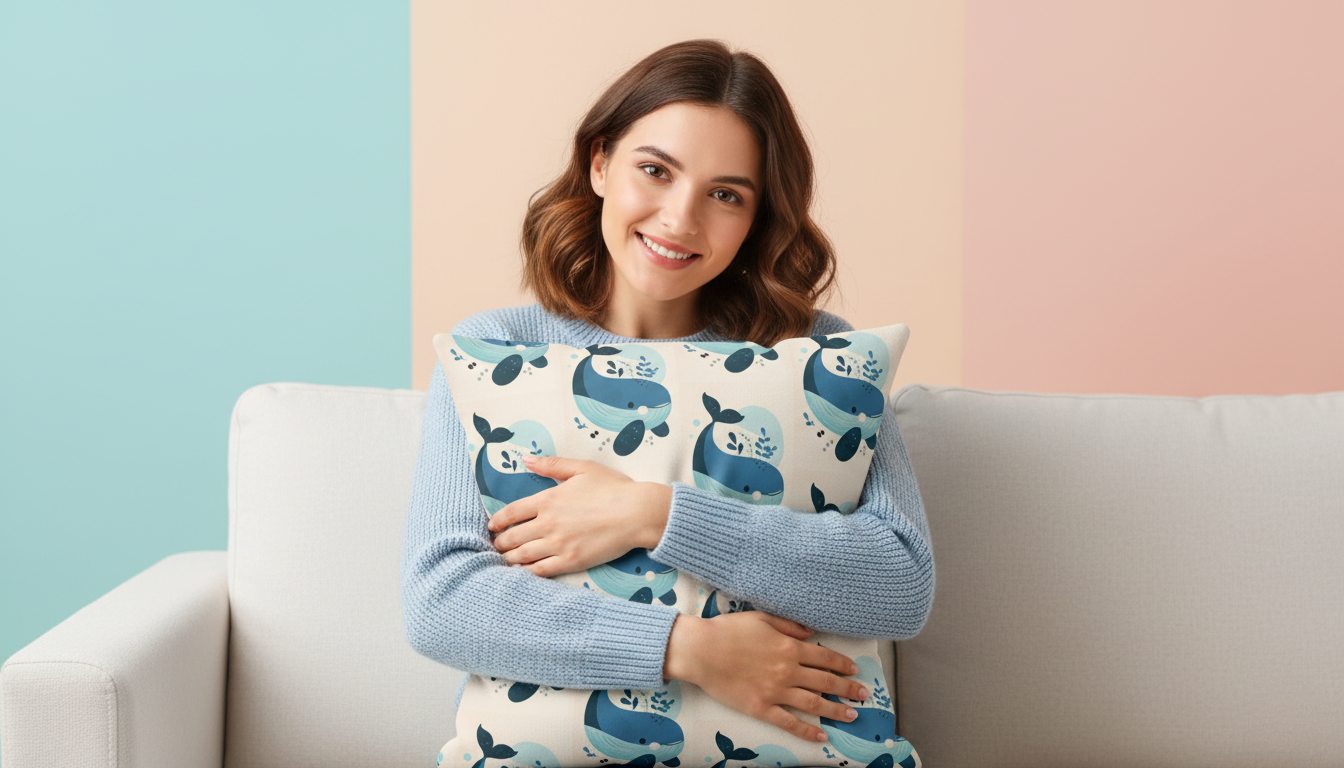 Cojín Estampado Mamíferos Marinos Abrazados en Estilo Minimalista – Decoración Infantil Marina con Toques de Ternura