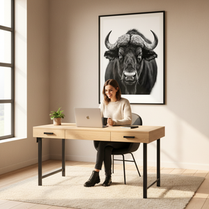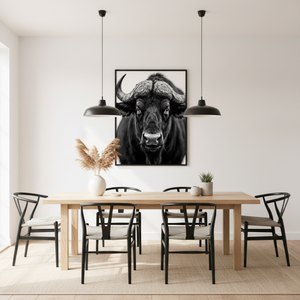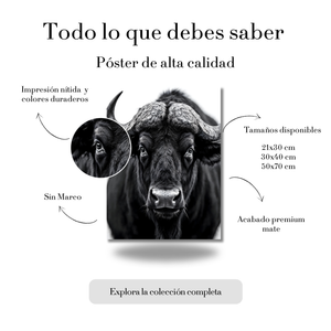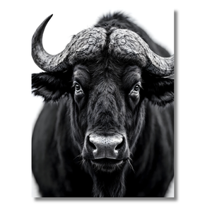 Búfalo Imponente – Cuadro Animal Blanco y Negro con Fuerza Salvaje