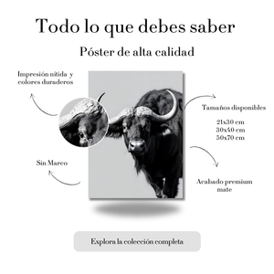Búfalo de Perfil – Cuadro Animal Blanco y Negro con Fuerza Natural