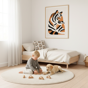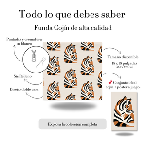 Cojín Estampado Tigre Bebé en Estilo Minimalista – Decoración Infantil con Toques Étnicos y Exóticos