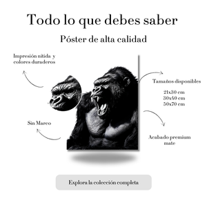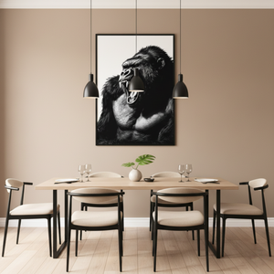 Gorila Salvaje Pensativo – Cuadro Animal Blanco y Negro de Impacto Visual