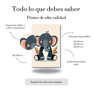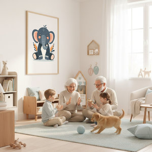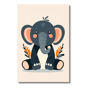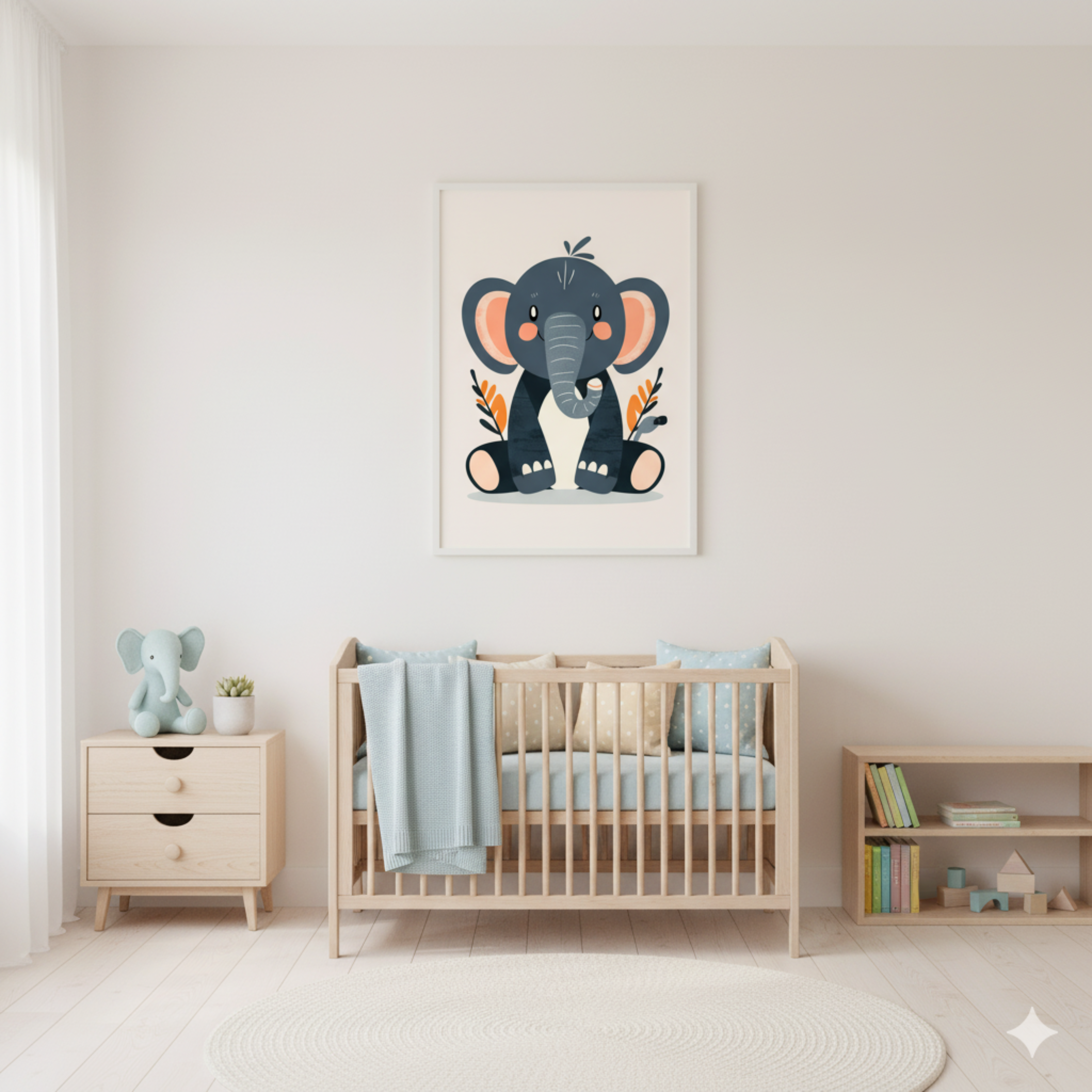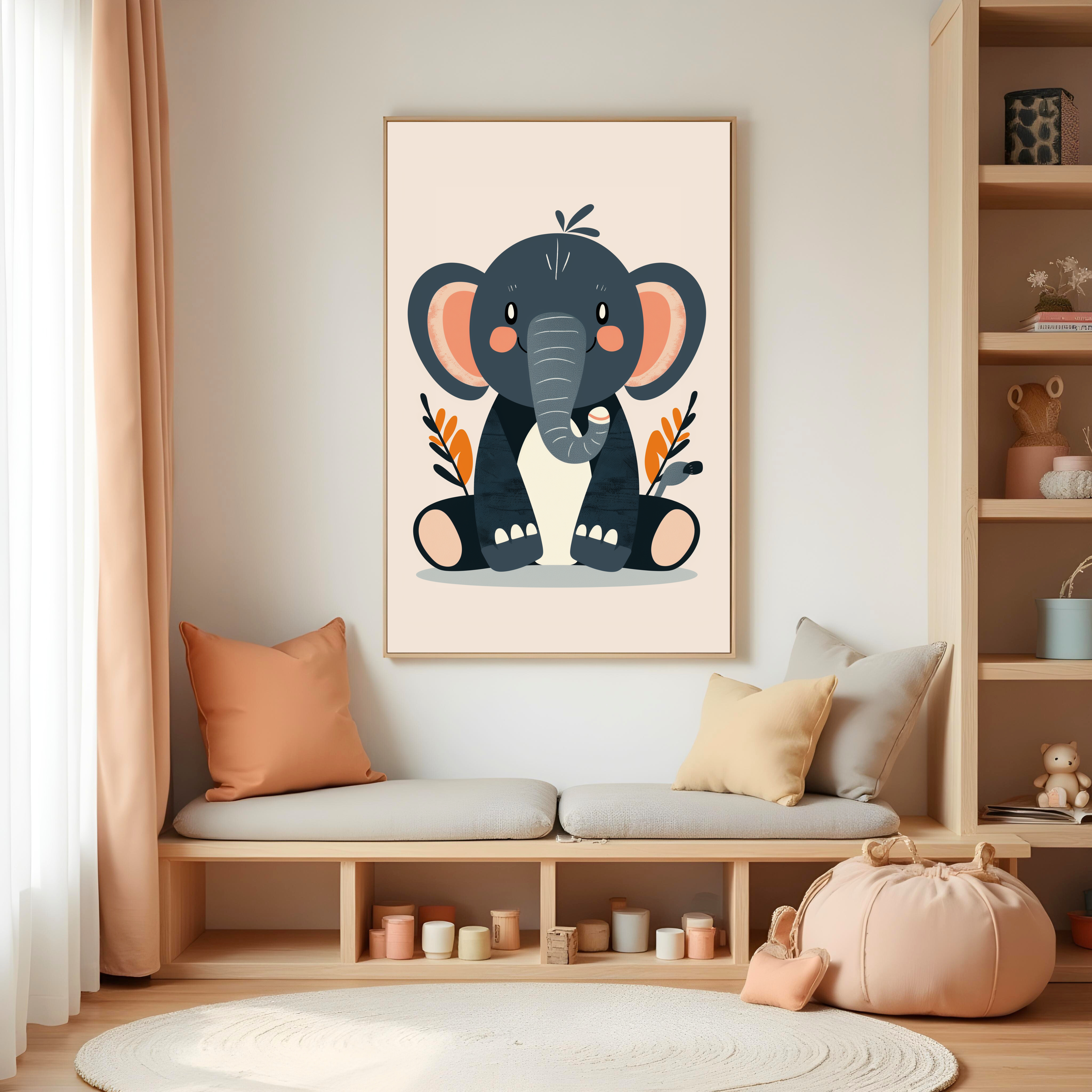 Elefante Azul Minimalista con Detalles Naranjas – Arte Infantil para Decoración Moderna
