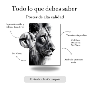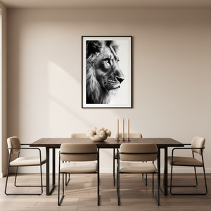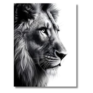 León en Perfil – Cuadro Animal Blanco y Negro de Expresión Poderosa