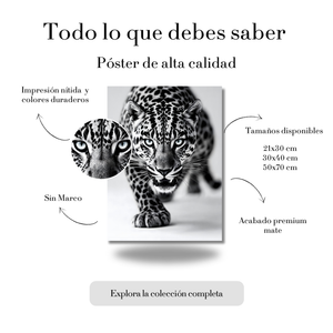 Leopardo en Marcha – Cuadro Animal Blanco y Negro con Movimiento y Energía