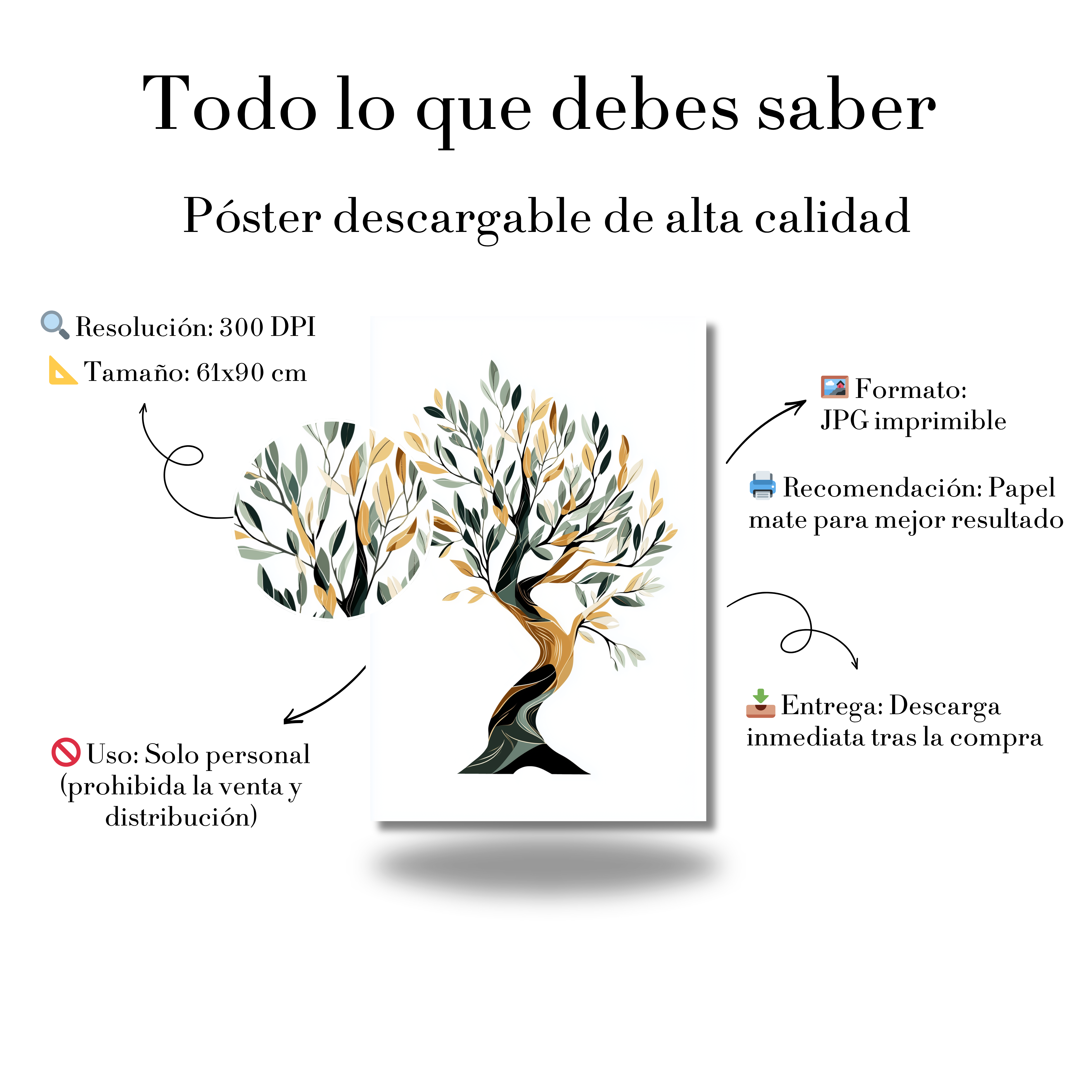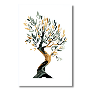 Árbol Ilustrado con Hojas de Olivo – Diseño Botánico para Impresión