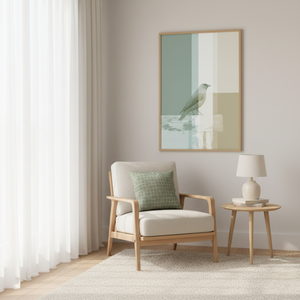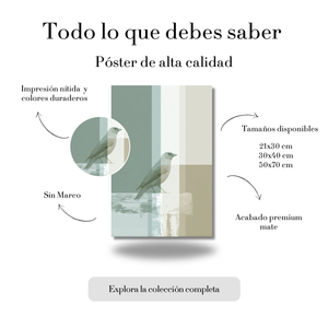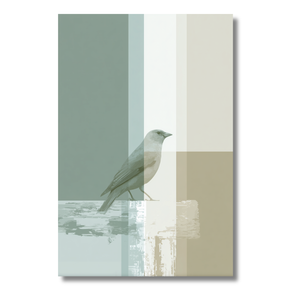 Ave Minimalista sobre Fondo Geométrico – Póster en Tonos Naturales y Suaves