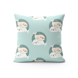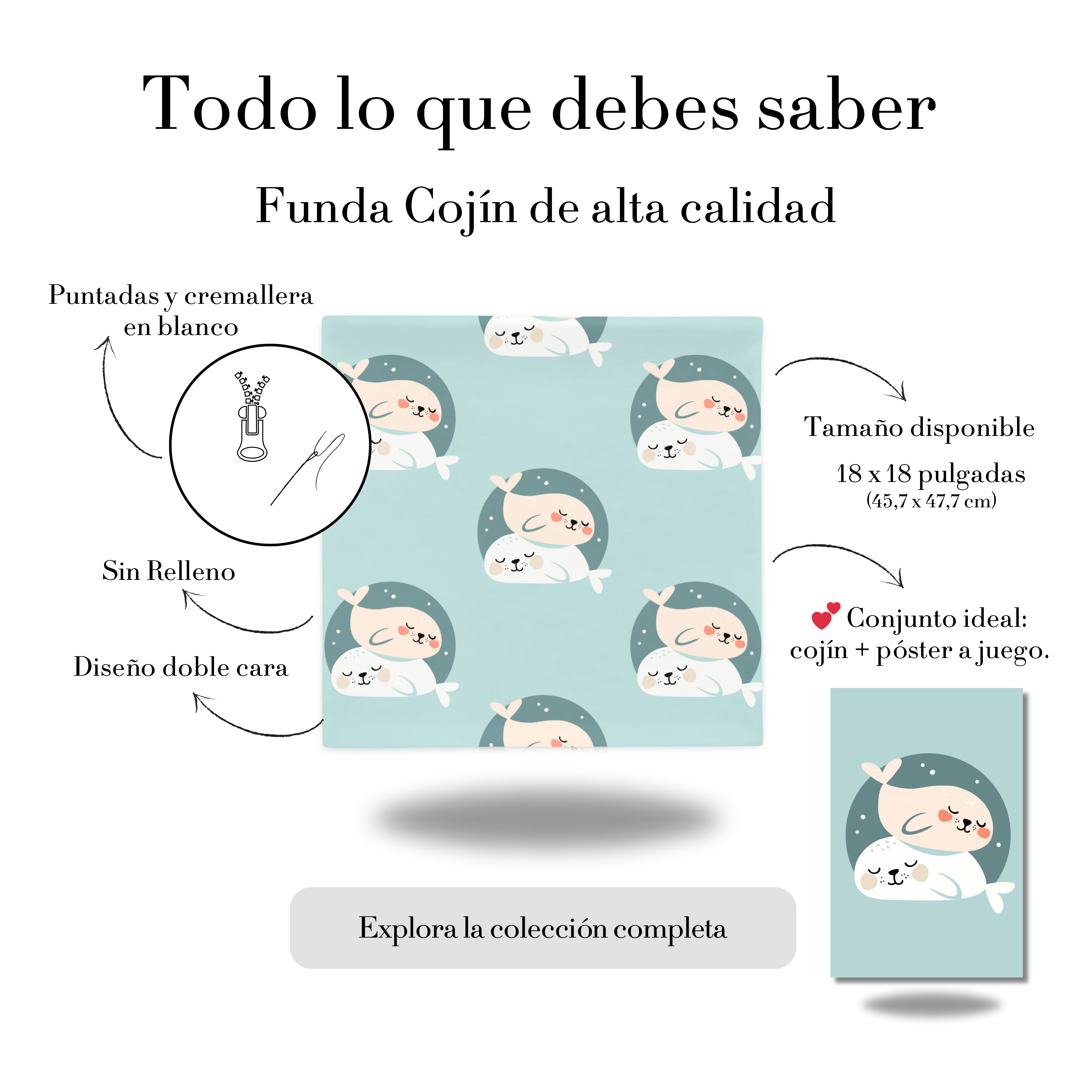 Cojín Estampado Mamíferos Marinos Abrazados en Estilo Minimalista – Decoración Infantil Marina con Toques de Ternura