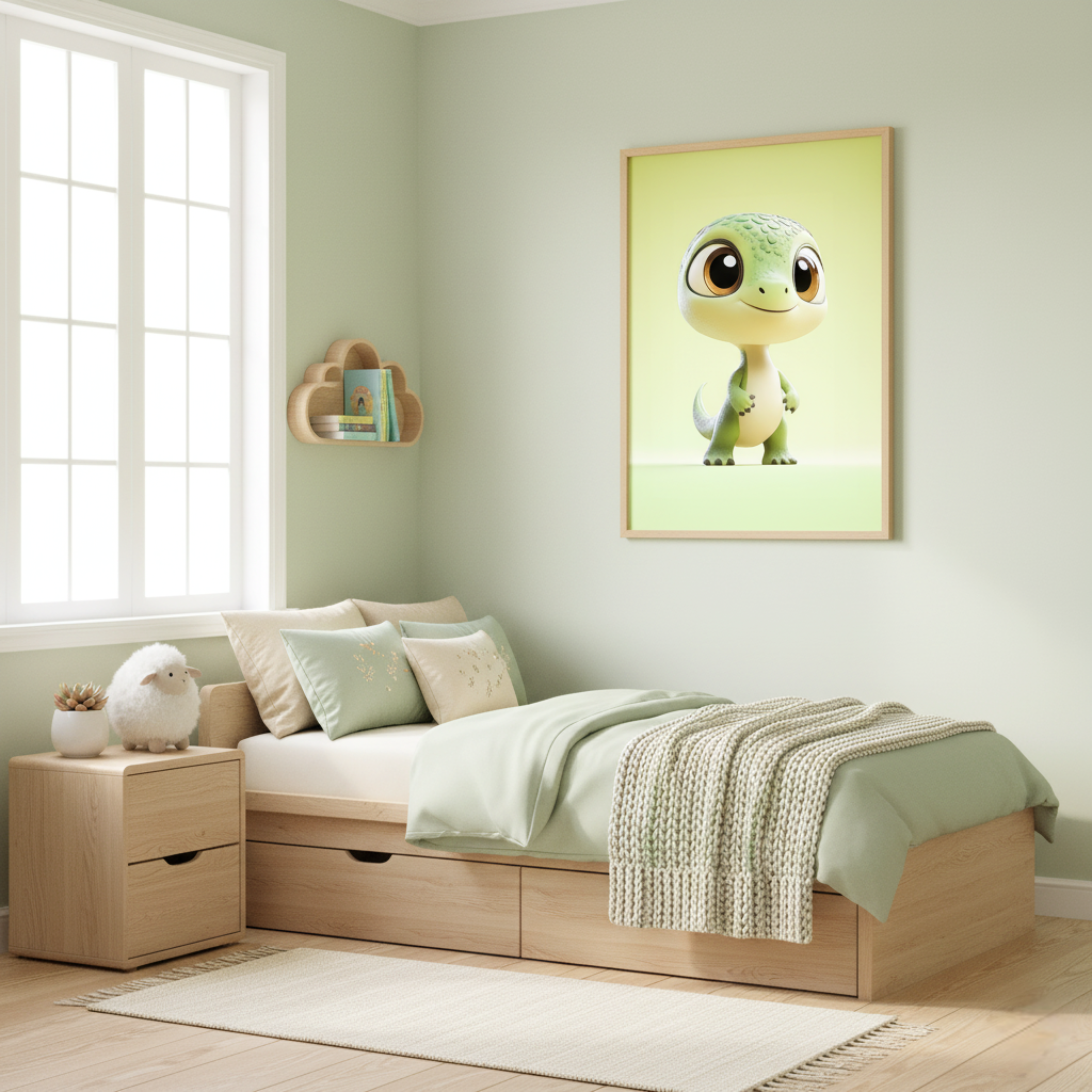Dinosaurio Verde inspirado en el Estilo Pixar – Lámina Infantil Moderna
