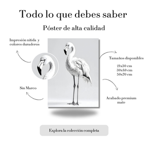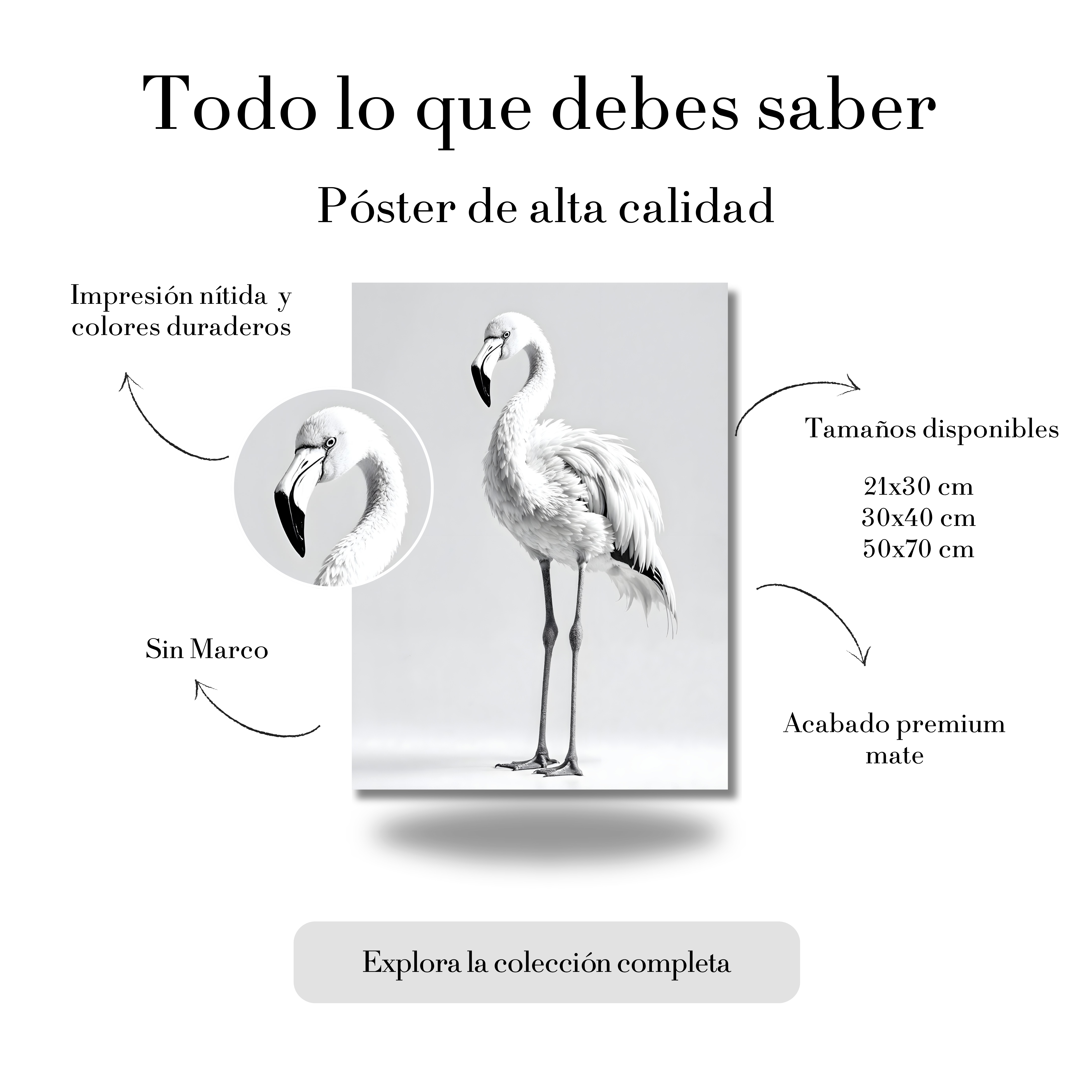 Flamenco Elegante – Cuadro Animal Blanco y Negro de Estética Minimalista
