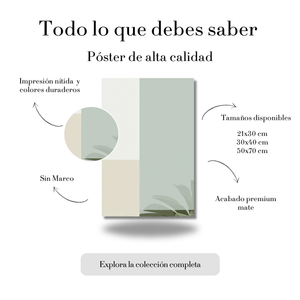 Formas Geométricas con Hojas en Tonos Suaves – Póster Minimalista Natural