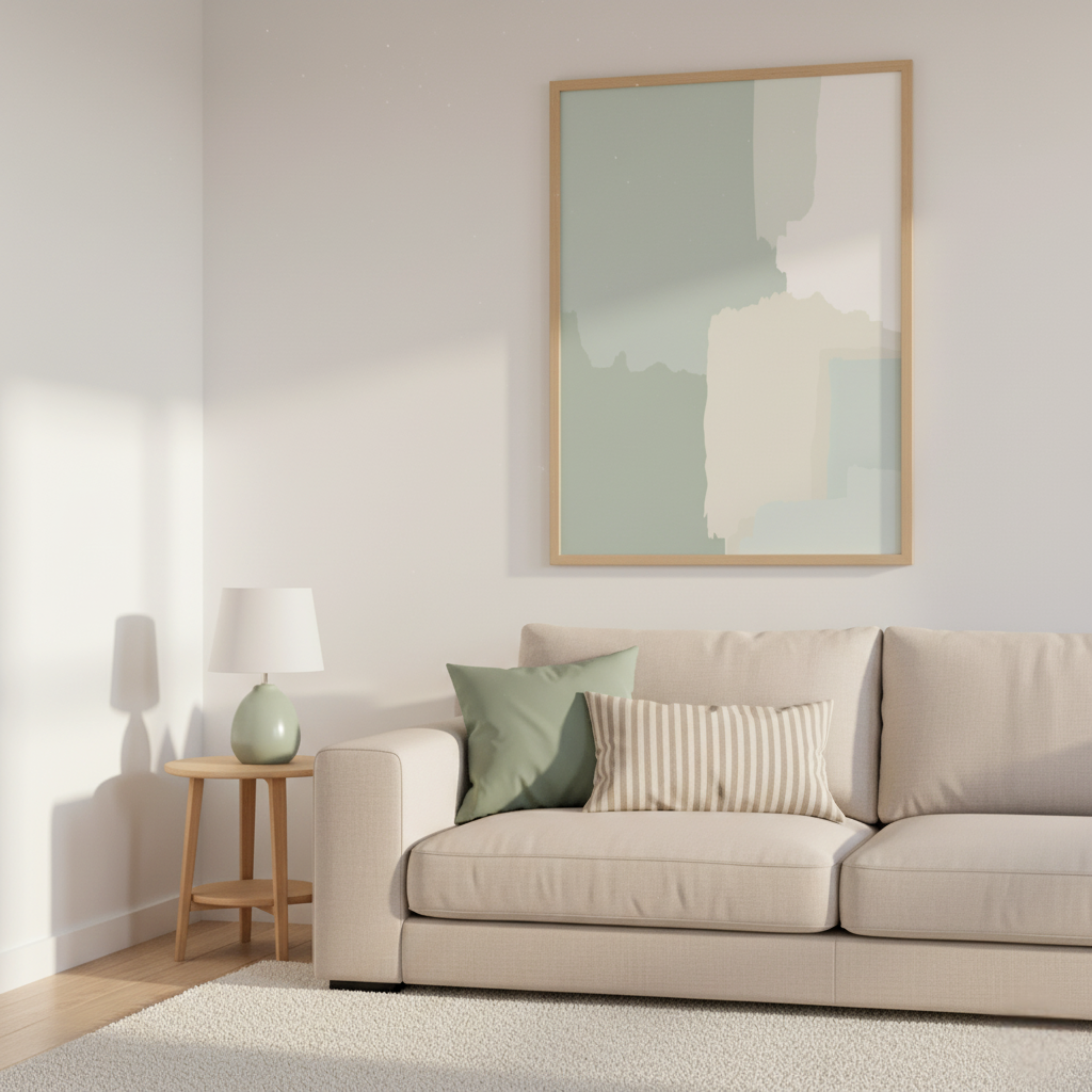 Formas Orgánicas en Verde y Beige – Póster Abstracto de Estilo Minimalista