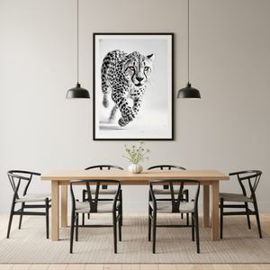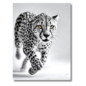 Guepardo en Acción – Cuadro Animal Blanco y Negro para Ambientes Dinámicos