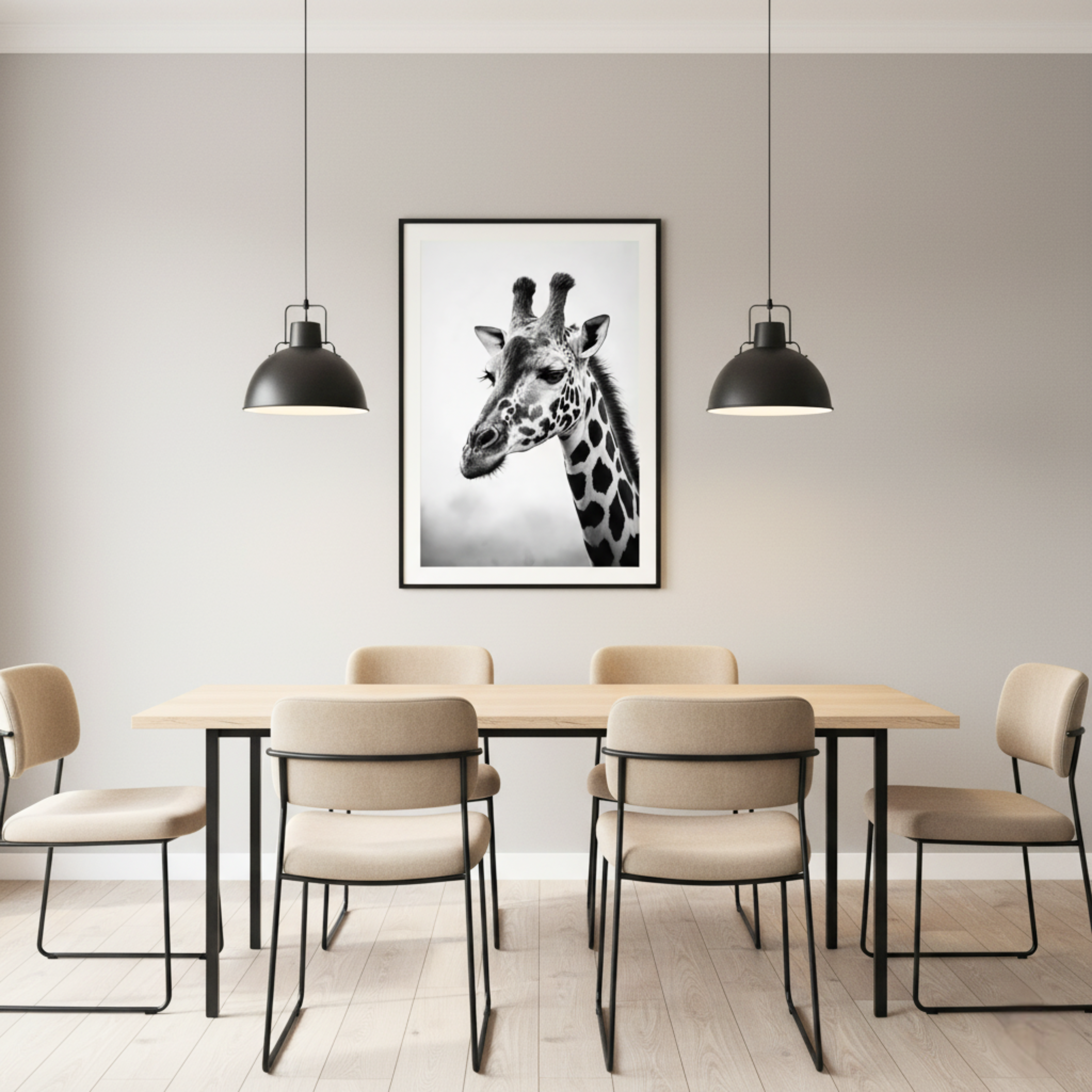 Jirafa Elegante – Cuadro Animal Blanco y Negro con Estilo Sofisticado