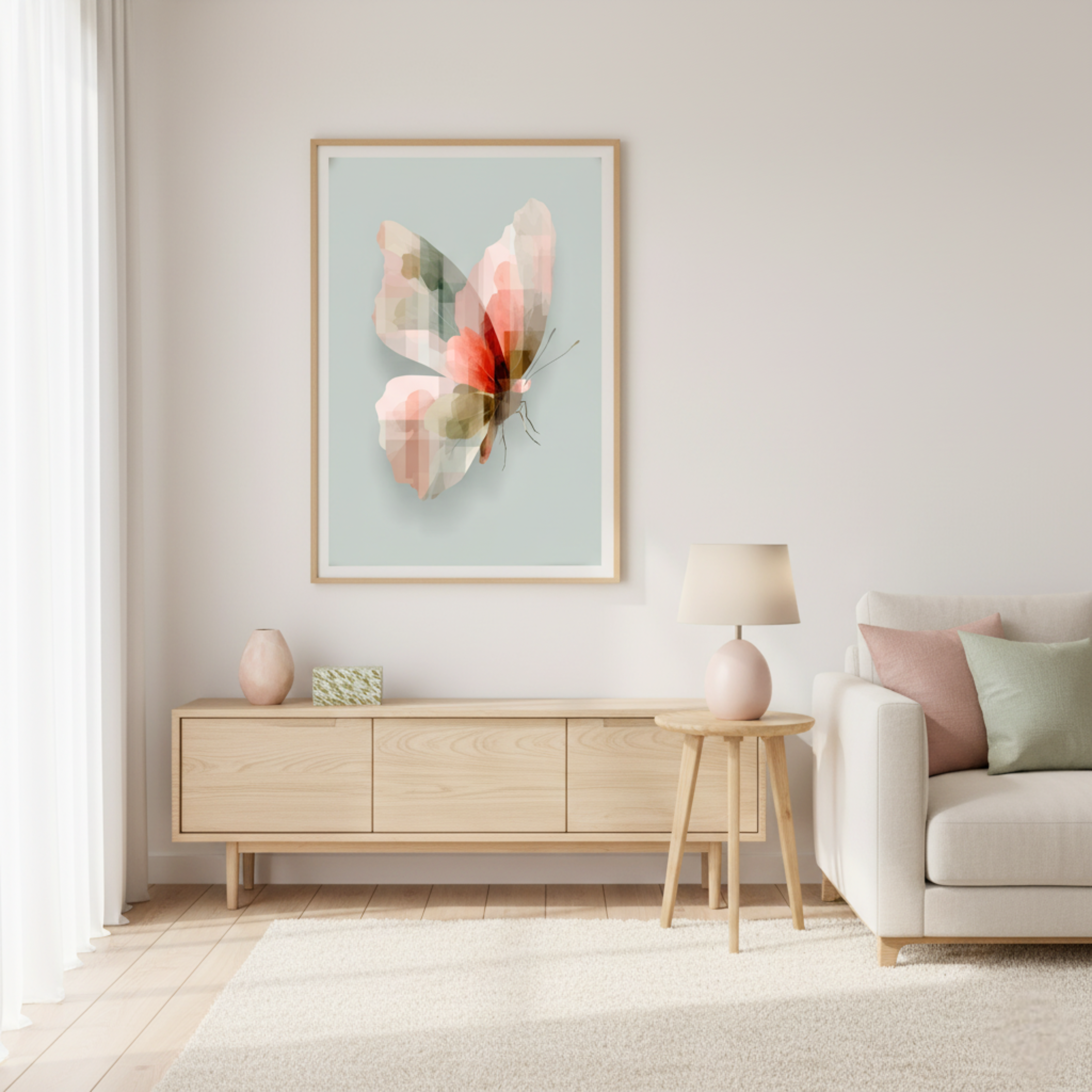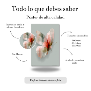 Mariposa en Tonos Rosa y Verde – Póster Minimalista de Estilo Natural