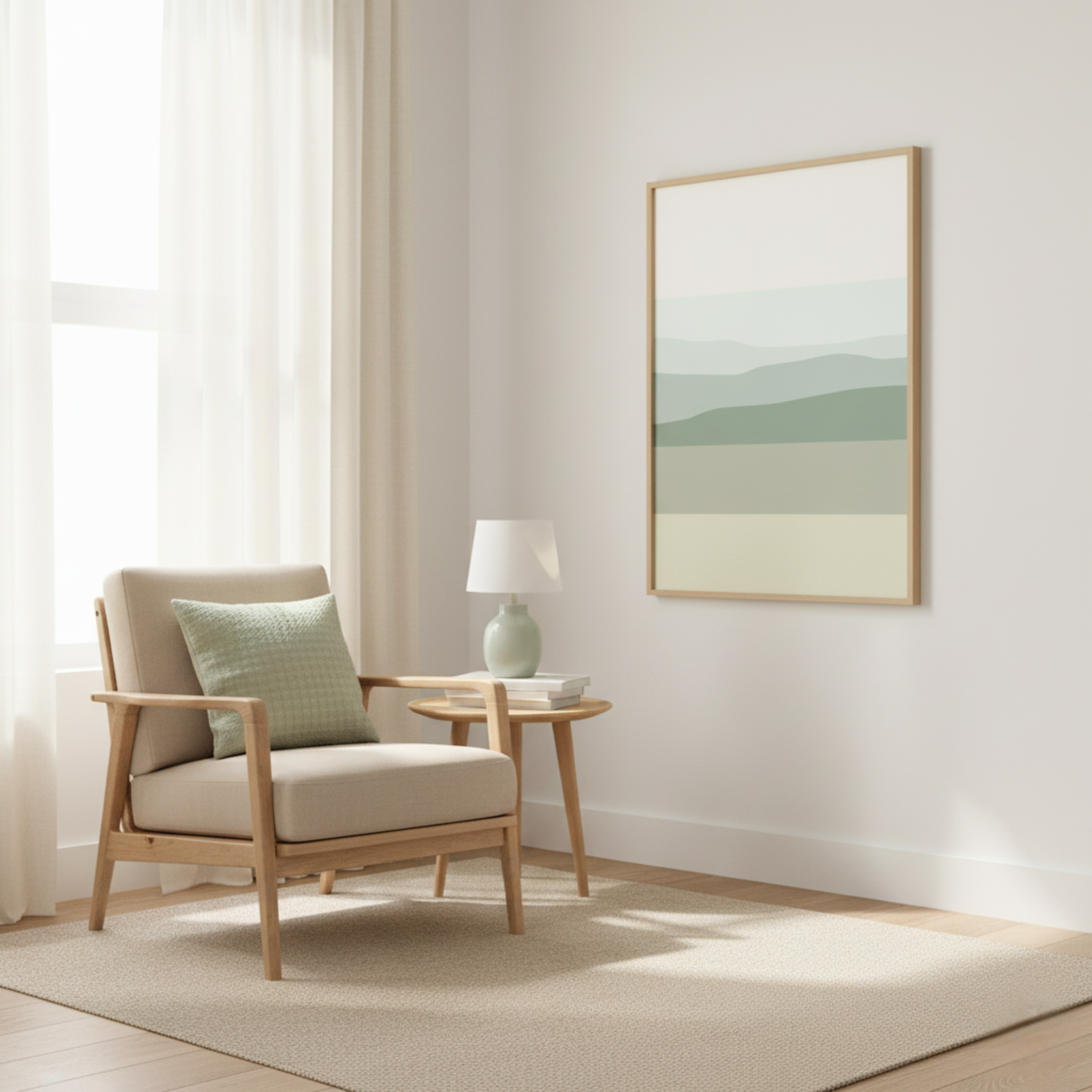 Paisaje Suave en Tonos Verdes y Beige – Póster Minimalista de Estilo Natural
