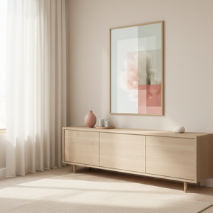 Pluma Suave en Tonos Rosa y Beige – Póster Abstracto Minimalista