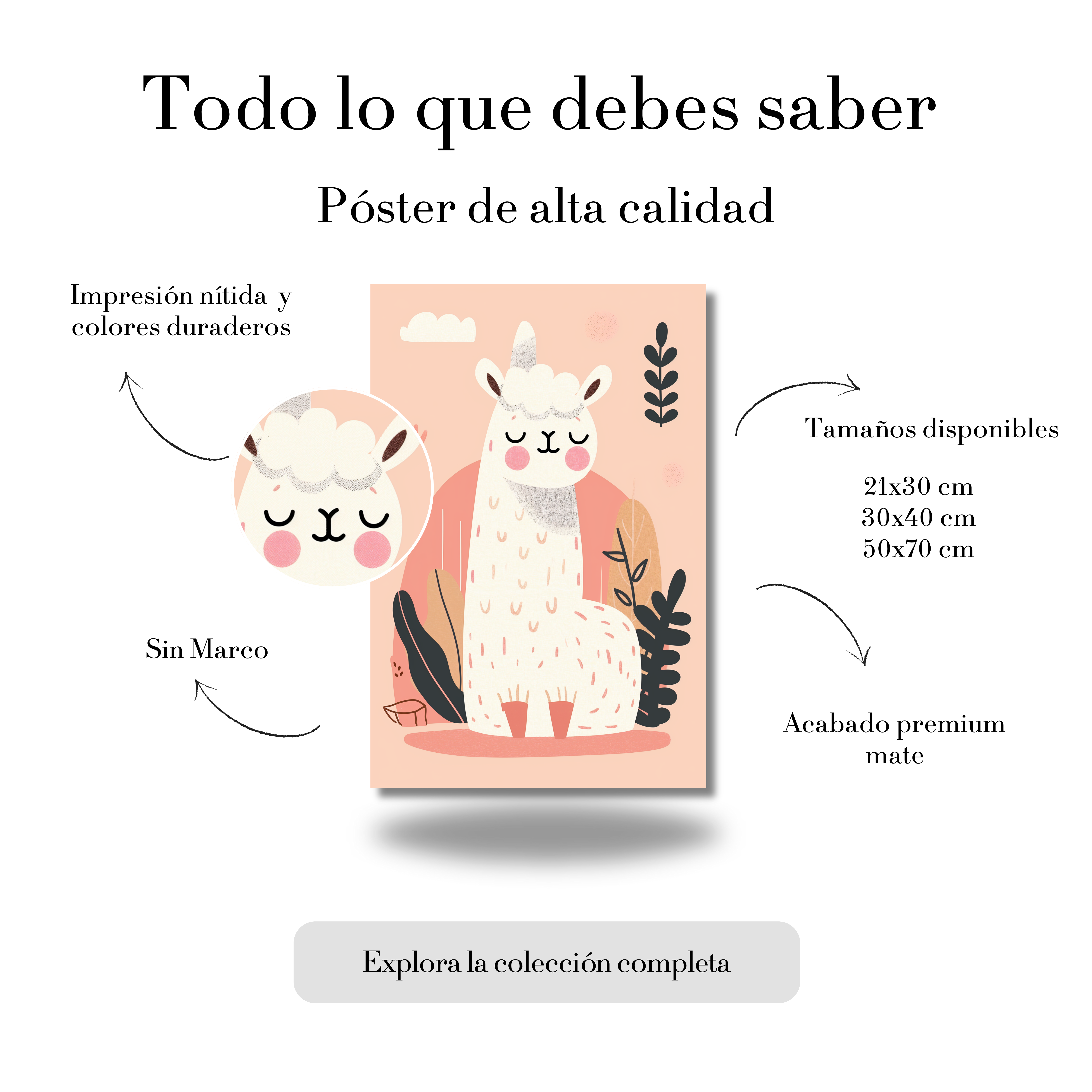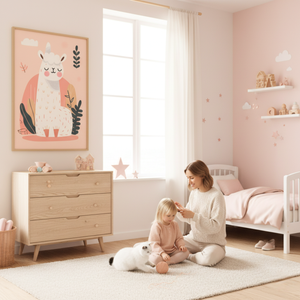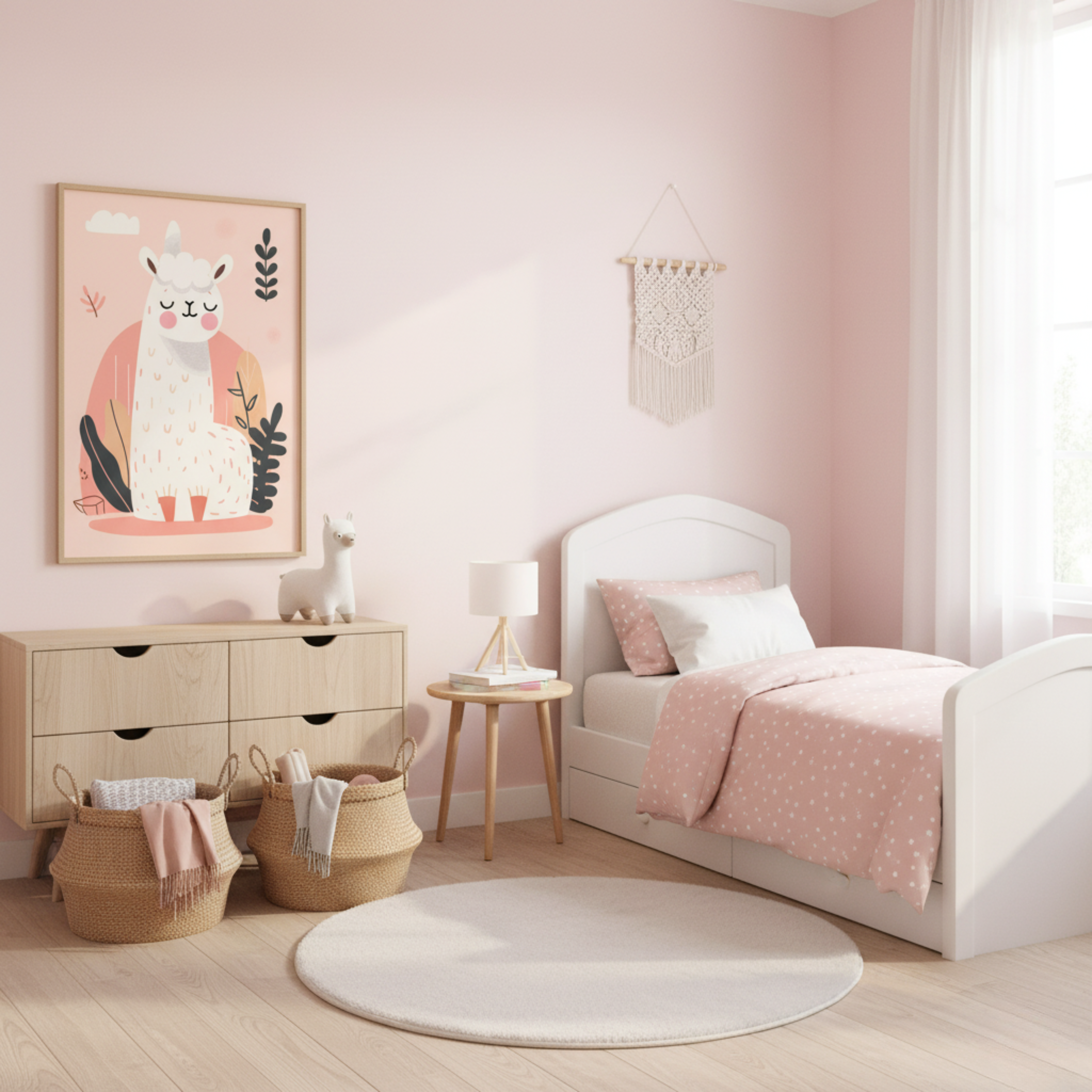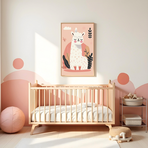 Alpaca Minimalista en Fondo Suave – Cuadro Infantil para Espacios Modernos