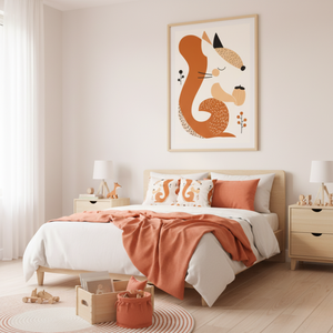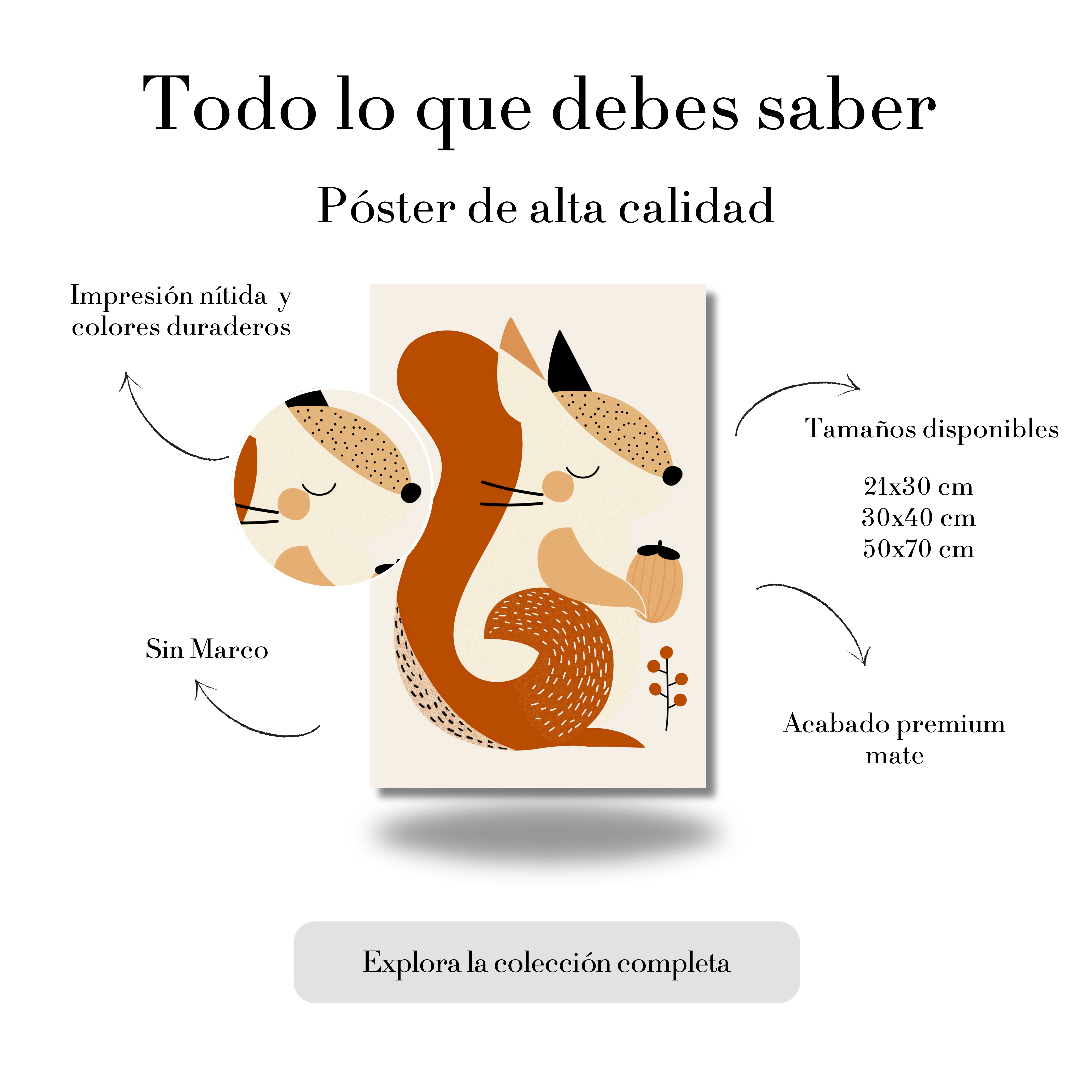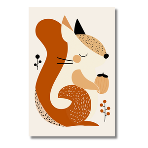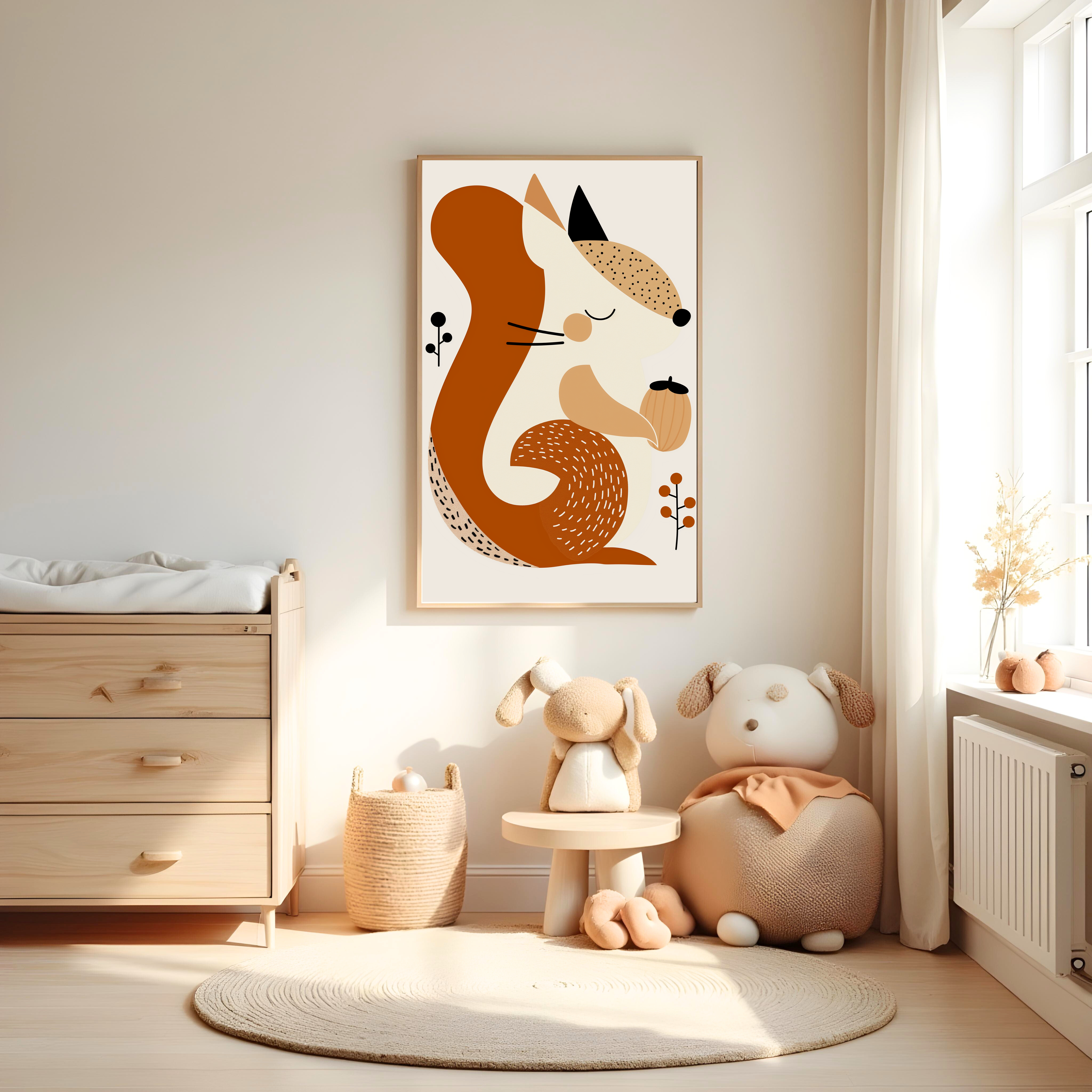 Ardilla Feliz con Nuez en Estilo Minimalista – Cuadro Infantil Inspirado en la Naturaleza