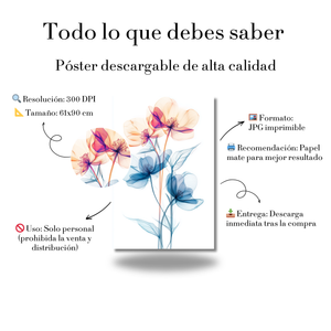 Póster de Flor Azul y Rosa Suave – Lámina Elegante Estilo Acuarela