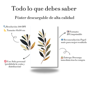 Rama Botánica Elegante en Tonos Cálidos – Lámina Vertical para Decorar
