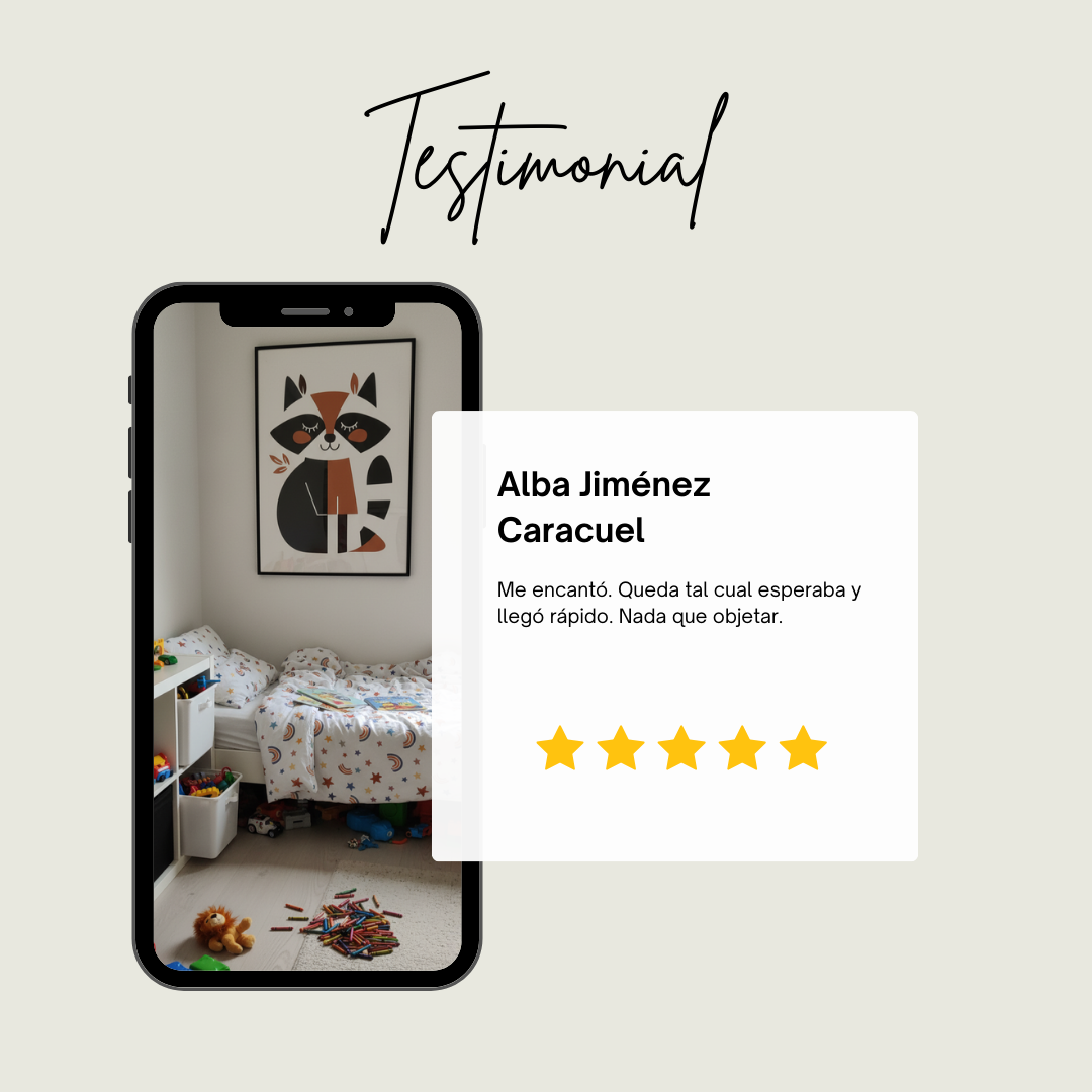 Mapache Sentado en Estilo Minimalista – Cuadro Infantil con Animales del Bosque
